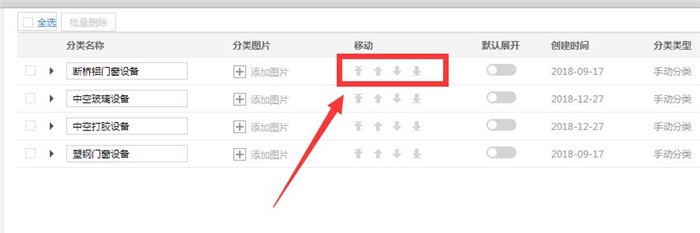 13.后面的移动按钮可以移动宝贝分类的顺序,有向上移动,有向下移动。还有直接一下到最顶端,以及一下到最底端。