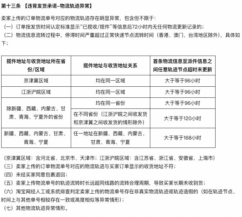 2、“物流轨迹异常”情形拆分成“物流轨迹超时”和“物流轨迹异常”,其中“物流轨迹超时”从原来赔付比例20%(5-100元)下降至5%(5-50元)