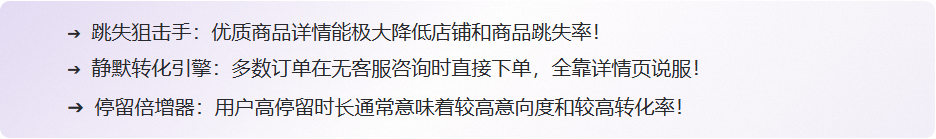商品详情页是电商转化的核心命脉,在流量成本飙升、用户注意力稀缺的当下,详情页的质量直接决定消费者是否愿意按下“立即购买”,好的商详能充分起到以下作用