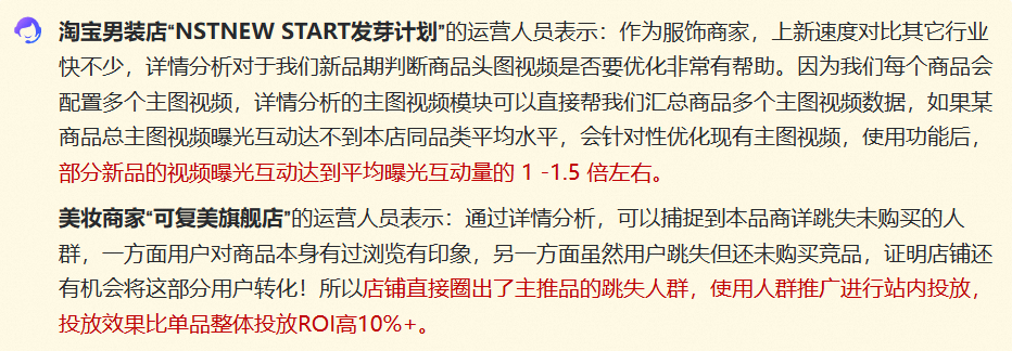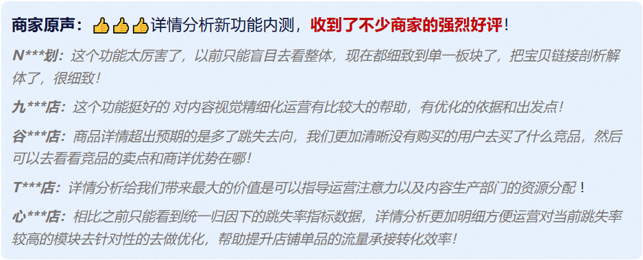 更有部分内测商家试用“详情分析”功能后,取得了不错的数据效果!