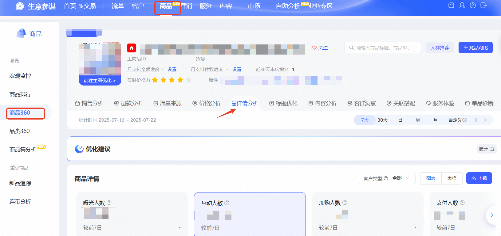 目前商详分析数据展示有限、导致商家难以定位商详具体问题模块和优化方向模糊,生意参谋针对此重磅推出“商详分析”功能,帮助商家看清商品详情各模块访问、转化及跳失情况,以明确优化方向,提升单品的流量承接转化效率!