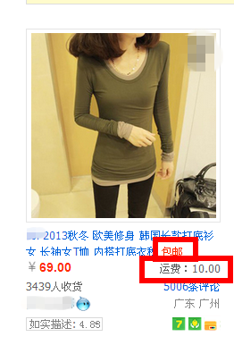 如:商品标题或描述中写明“包邮、包快递、包平邮、包EMS等”,却在运费模版中设定运费价格,让买家承担邮费。
