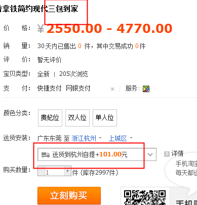 案例2:商品属于住宅家具等开通三包服务的类目的商品,商品标题中写三包到家(指包物流包配送包安装),但实际运费模板设置的却是买家承担运费或者是到物流点自提。