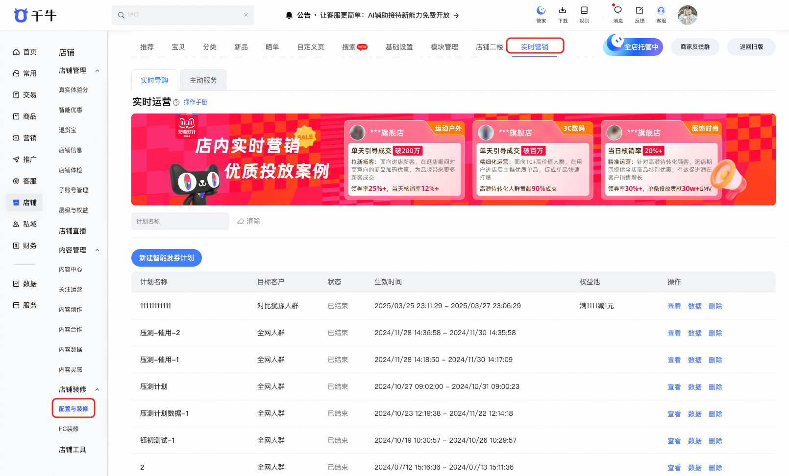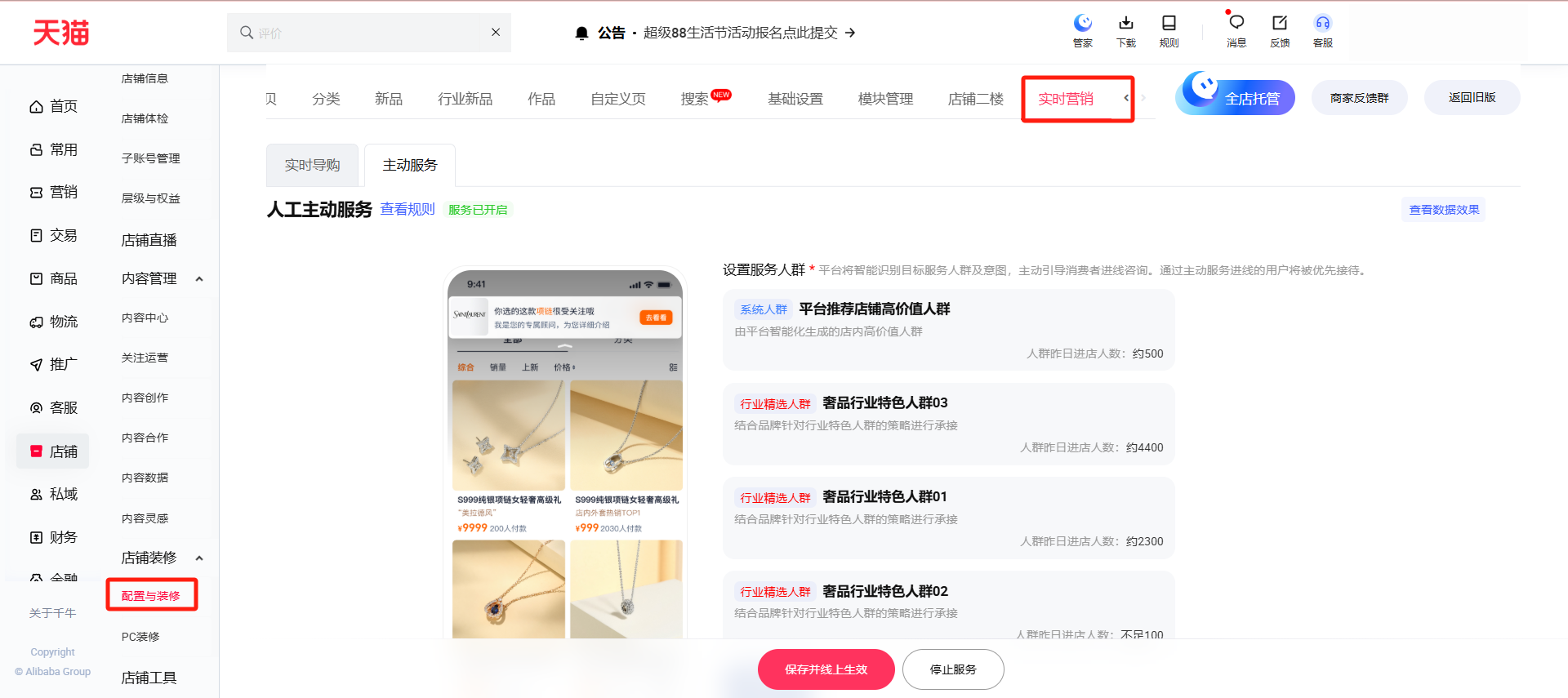实时营销产品地址:https://myseller.taobao.com/home.htm/shop/mobile/intelligentMarketing/ManualOpera/list