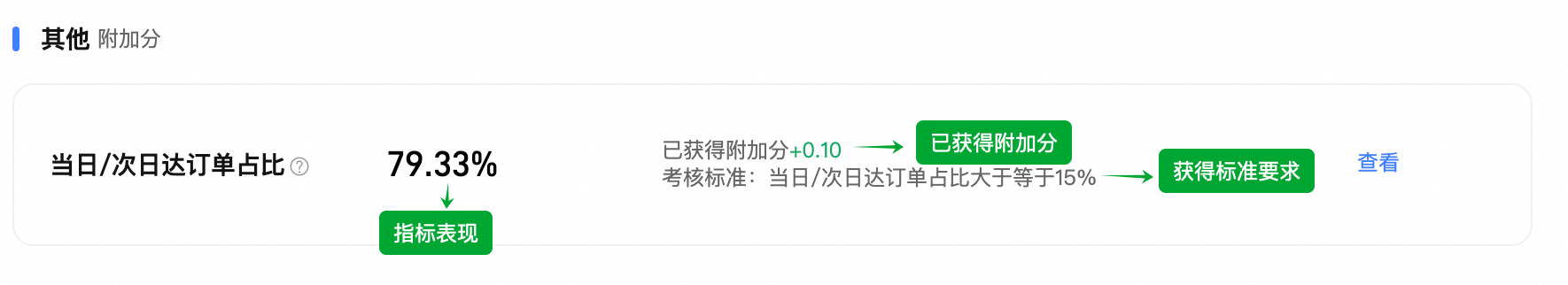 1个指标(当日/次日达订单占比)达到加分标准,可获得+0.05分