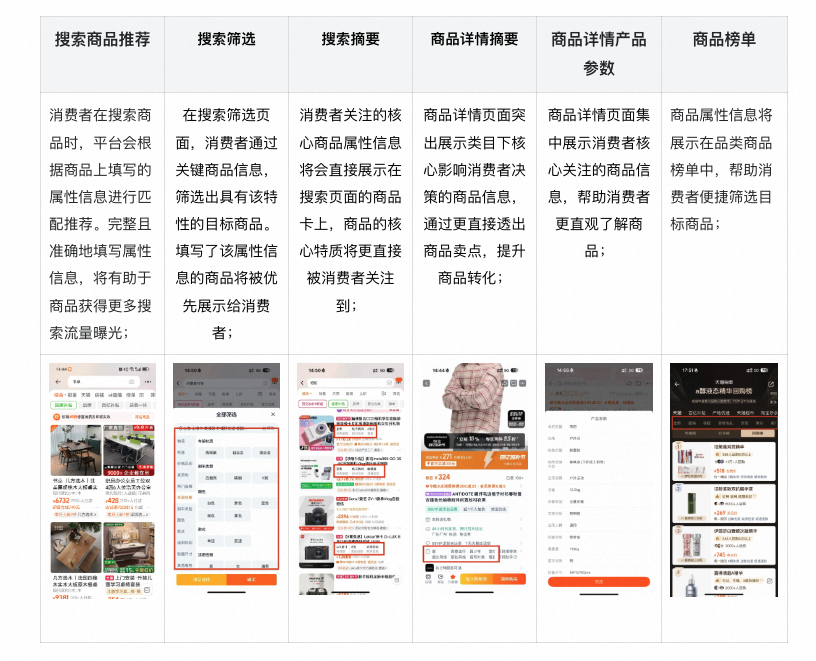 重要属性在搜索/商品详情场域下有明确应用场景,影响商品的流量获取及用户转化能力。