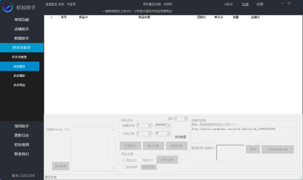 功能:卡位选品,爆款采集,同行采集,裂变店铺采集,整店采集,蓝海词鉴定,数据过滤。
