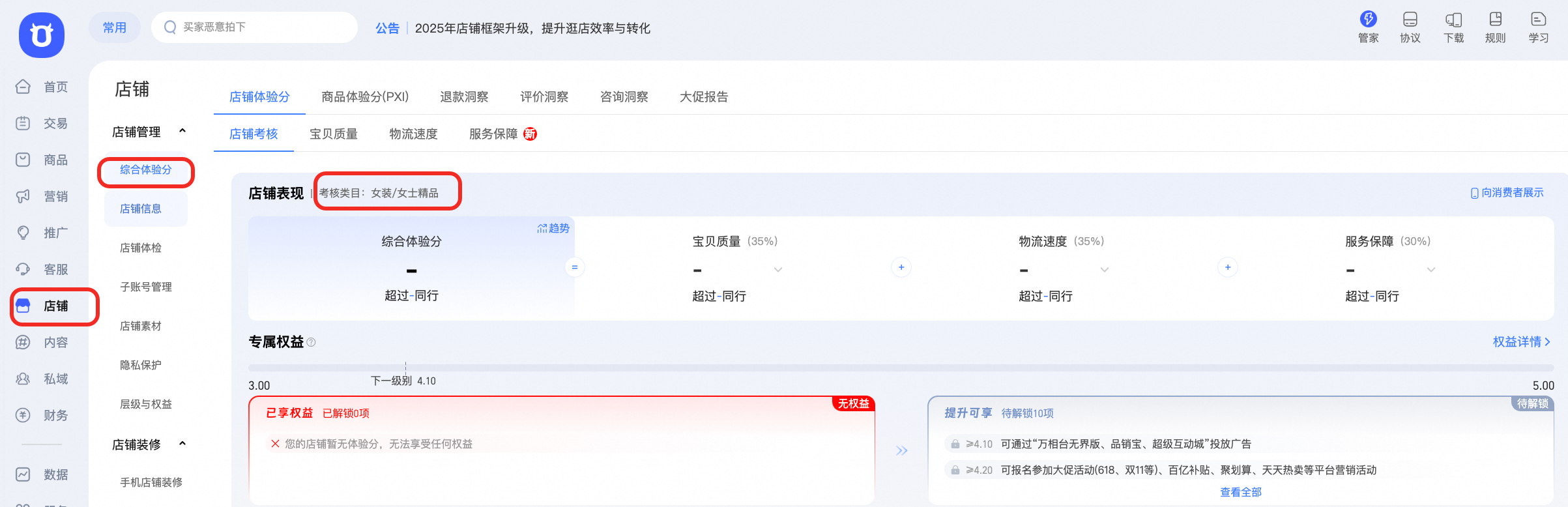 A:可在千牛首页-店铺-综合体验分页面查看主营类目。