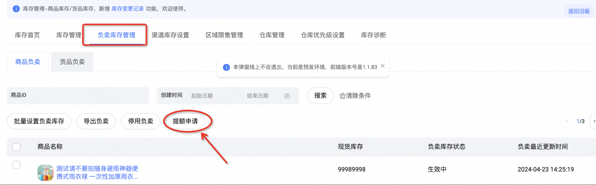 路径二:千牛卖家中心-商品-仓储库存-负卖库存管理-提额申请