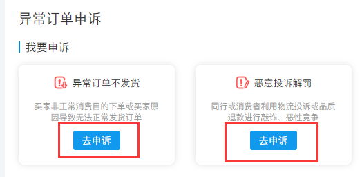 进入【电脑版商家管理后台】-【店铺管理】-【订单申诉 】-【我要申诉】-【恶意投诉解罚】-【去申诉】。