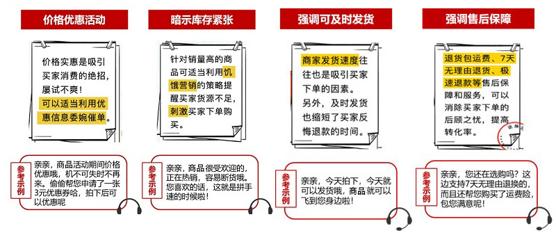 在此,我们为新手商家小结了4大话术技巧,见下图!