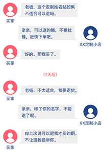 如果你的商品/服务没有办法达到买家的要求,可千万别向买家承诺呀。譬如,例如买家购买定制商品,平台规则不支持退货,但如果你自己承诺可以退,那……这锅还得你自己来背啊!