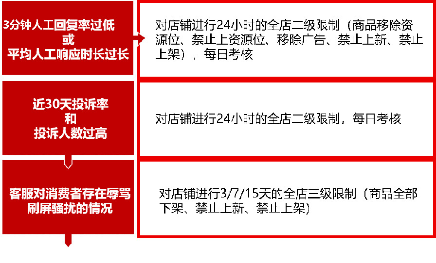 我们平台针对店铺的商家客服也有相应的考核指标,对服务差的,将进行店铺限制,而表现优异的店铺,也将给予流量扶持哦~~
