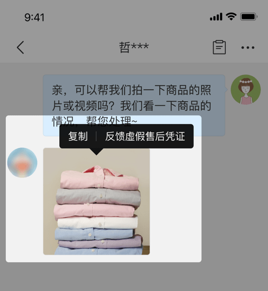 (2)商家版手机端:在聊天页面中,长按您认为是虚假凭证的图片,选择【反馈虚假售后凭证】