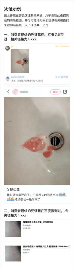 2、如果您认为消费者提供的虚假凭证属于“从别处找的图片”,也就是说您在其他渠道(包括但不限于其他电商平台的商品评论区、其他商家的评论区、本店铺其他用户的售后申请记录,以及各大社交平台如微博、抖音、小红书、百度贴吧等)也见到过这张图片,请您说明图片来源,并尽可能地为我们提供直接相关的链接地址以及清晰的截图证据,示例如下;
